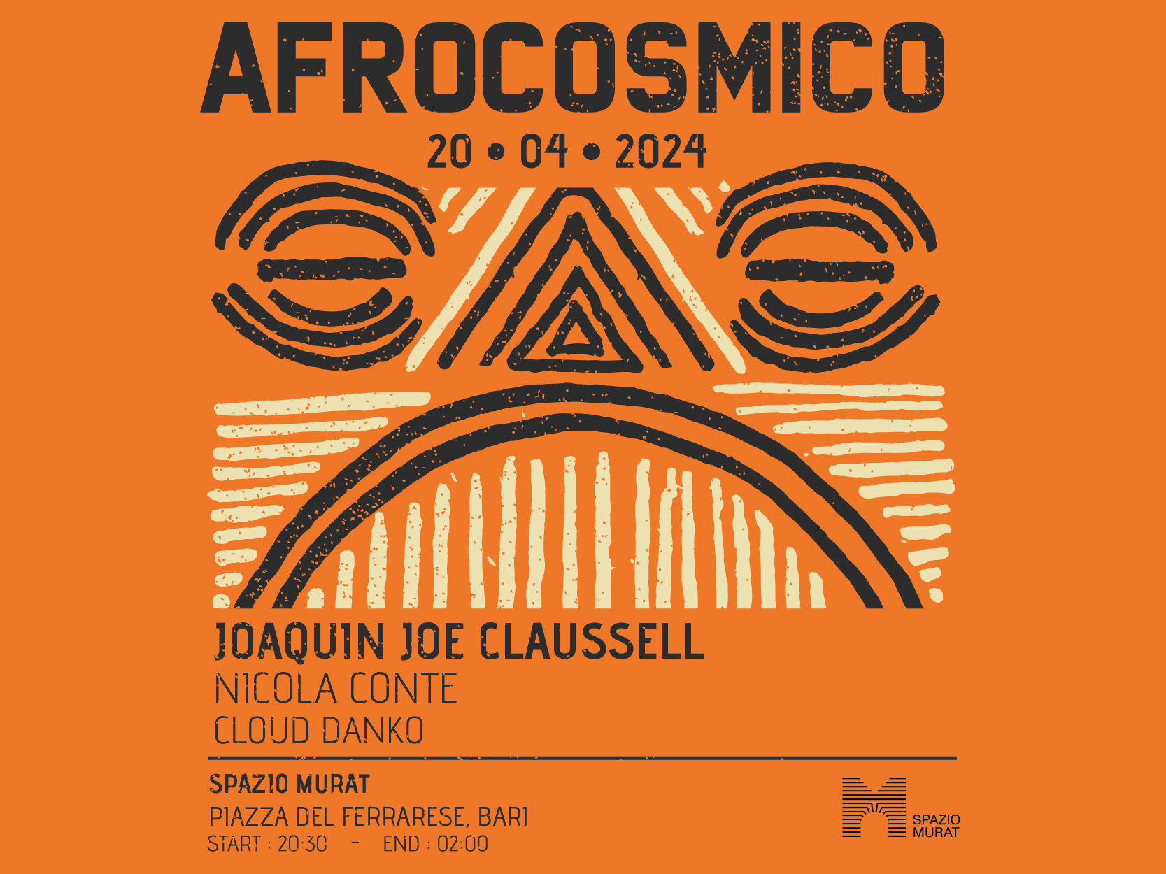 AFROCOSMICO - Club Culture e controcultura - il progetto musicale/culturale ideato da Nicola Conte con Cloud Danko e Nico Panzini - riparte con una rassegna di 4 appuntamenti a Spazio Murat, co-organizzatore dell'evento.